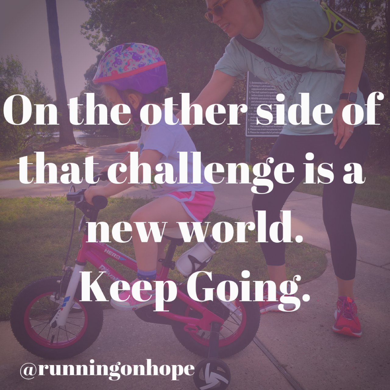 We put her bike away for a few months until she felt excited to try again, which happened to be this past weekend. I was hoping that with some time and growth behind her, that it might come more easily to her. It did not. She simply did not understand the process of pedaling a bike and I simply could not explain how to do it. I wanted to quit, she wanted to quit…but we didn’t. I didn’t hand the task off to my husband, like I might ordinarily do. I kept with it right by her side. It would be a lesson for both of us. It took us about thirty minutes to travel maybe a quarter mile to the nearby park, with me hunched over the entire time, one hand on her bike. My back aching, I cheered her on with each exasperated “I can’t” she would whimper. I tried soft and gentle talk, cheerleading, clapping, jumping, smiling, consoling, instructing—“pedal forward, pedal up, pedal down, keep going, don’t stop, eyes up ahead, eyes forward, eyes on me…” Finding the right words and the right tone to get her to reach this milestone was far more difficult than I imagined it to be and it made me realize that my encouraging skills need a little work.