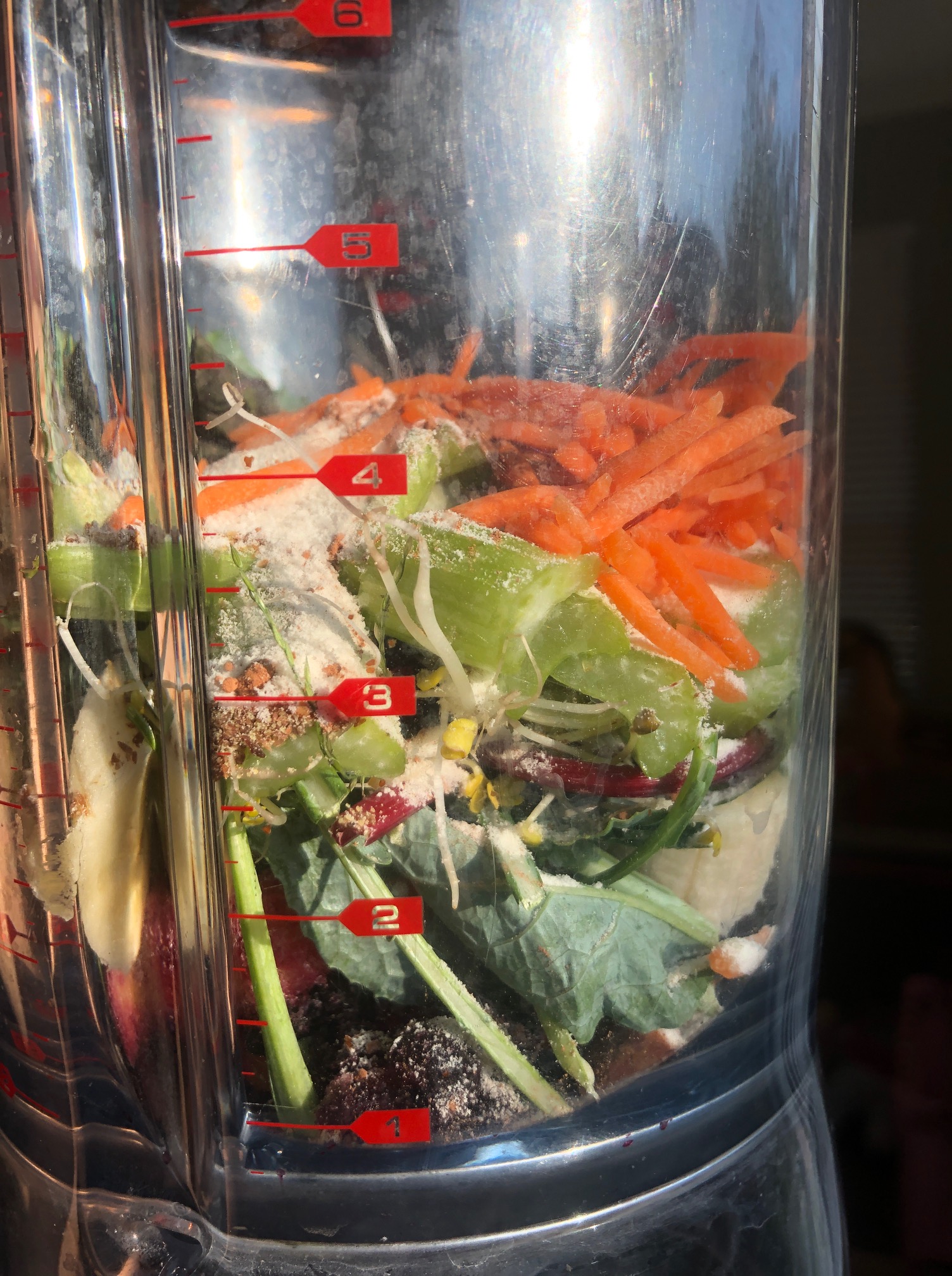 My mom asked me how it tasted, you know, with all those different foods blended together. I guess my response would be: healthy. Ha! I’ve gotten it down to fit my tastes, not just to tolerate, but to enjoy. I might add apples, oranges or other fruits to add sweetness. Once you get going on your daily smoothie game, you’ll figure out what proportions work for your taste. Just make sure you make it diverse!